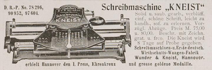 Werbeanzeige für Schreibmaschine Kneist monochrom