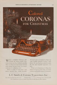 Werbeanzeige für Schreibmaschinen L. C. Smith und Corona monochrom