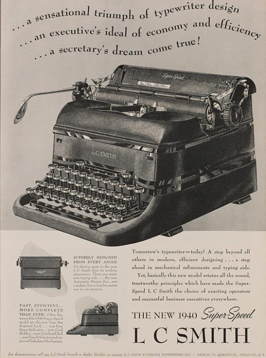 Werbeanzeige für Schreibmaschine L. C. Smith Super Speed monochrom; mit Passepartout