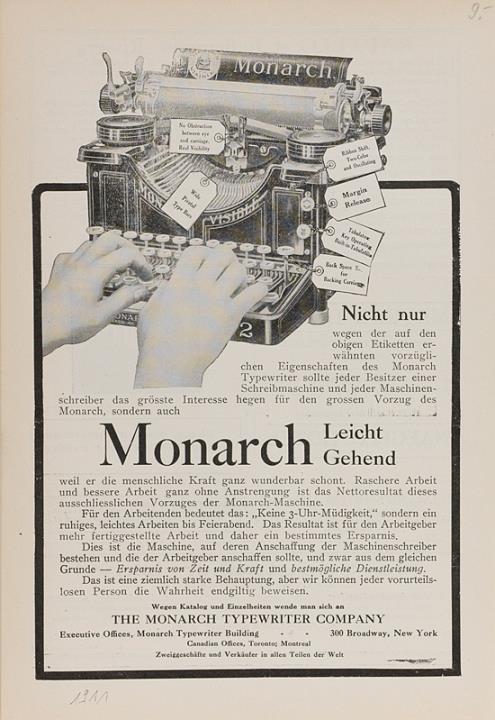 Werbeanzeige für Schreibmaschine Monarch Visible 2 monochrom