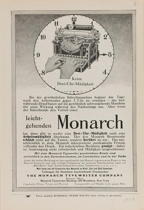 Werbeanzeige für Schreibmaschine Monarch Visible 2 monochrom
