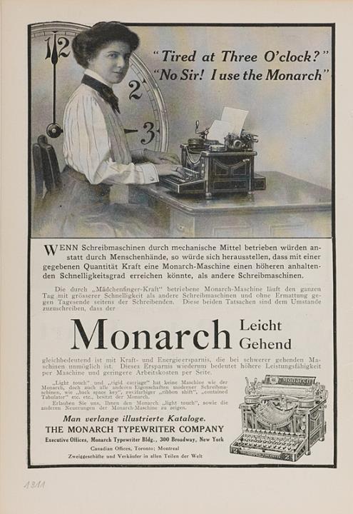 Werbeanzeige für Schreibmaschine Monarch Visible 2 monochrom