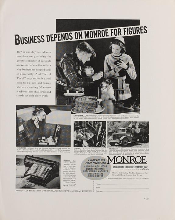 Werbeanzeige für Rechenmaschine Monroe monochrom