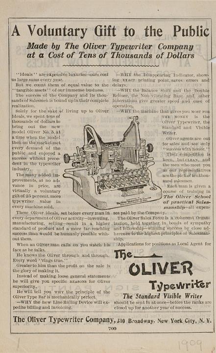 A Voluntary Gift to the Public Made by the Oliver Typewriter Company
