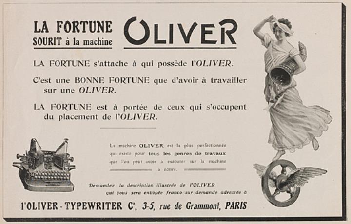 Zeitungsblatt (L'Illustration) mit Werbeanzeige für Schreibmaschine Oliver 6 monochrom