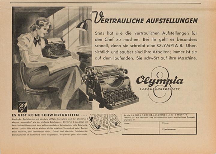 Zeitungsblatt (Berliner Illustrirte Zeitung) mit Werbeanzeige für Schreibmaschine Olympia 8 monochrom