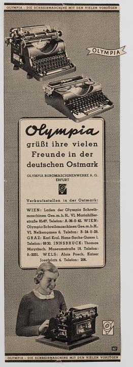 Werbeanzeige für Schreibmaschine Olympia 8 und Simplex monochrom
