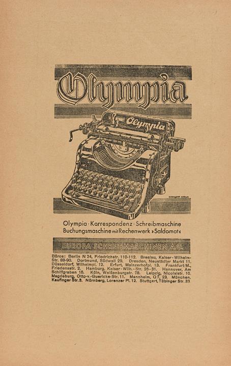Werbeanzeige für Schreibmaschine Olympia monochrom