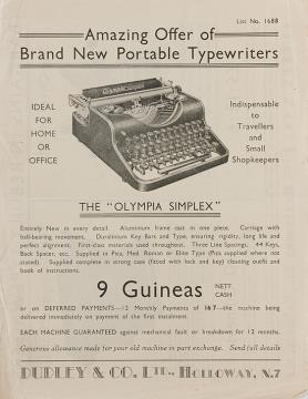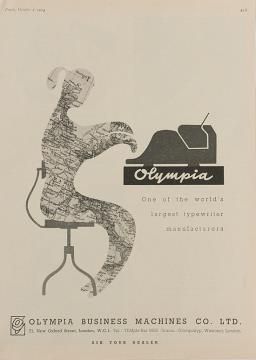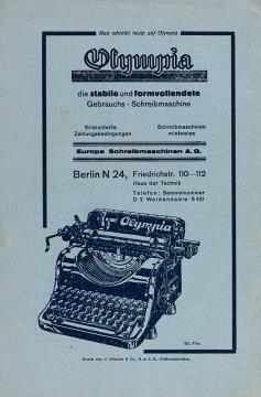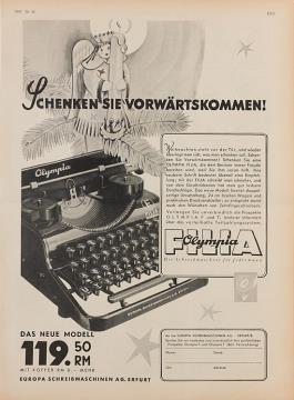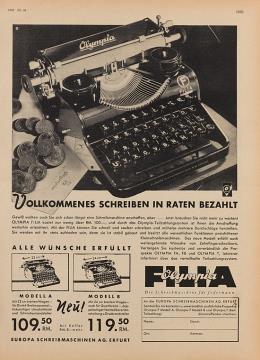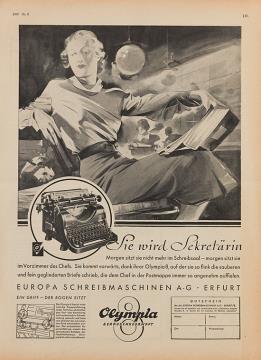 Werbeanzeige für Schreibmaschine Olympia monochrom