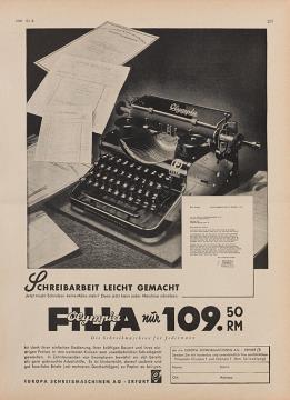 Werbeanzeige für Schreibmaschine Olympia Filia F monochrom