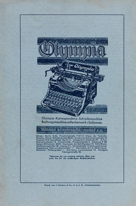 Werbeanzeige für Schreibmaschine Olympia monochrom