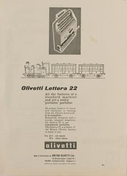 Werbeanzeige für Schreibmaschine Olivetti Lexikon und Lettera 22 monochrom