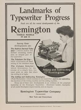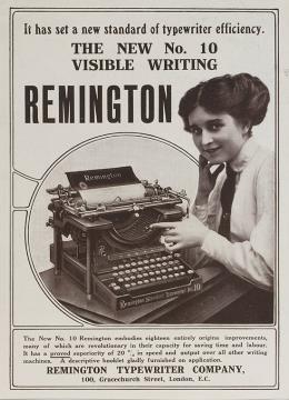 Werbeanzeige für Schreibmaschine Remington 10 monochrom