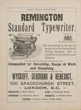 Next to literature on the history of technology, of the typewriter and the office, the Archive holds patent letters, textbooks and instruction manuals as well as historical postcards, letters, photographs and various kinds of advertising (leaflets and brochures, advertising stamps, newspaper ads, posters and signs, promotional gifts).