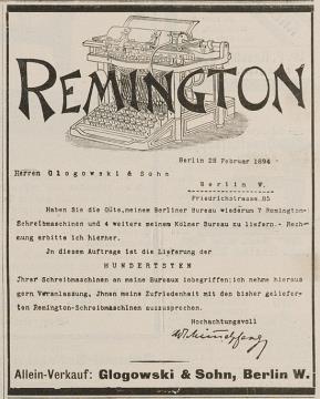 Werbeanzeige für Schreibmaschine Remington monochrom