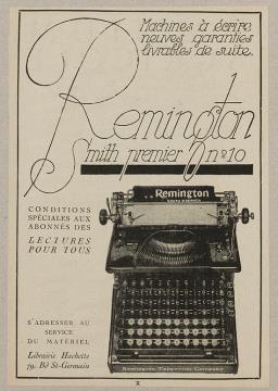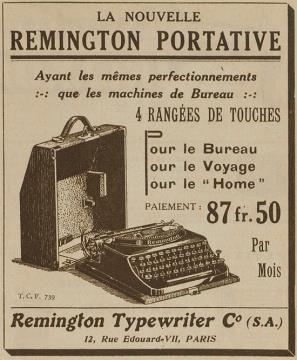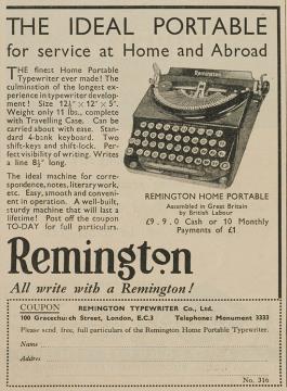 Werbeanzeige für Schreibmaschine Remington monochrom