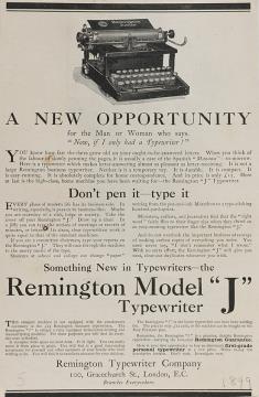Werbeanzeige für Schreibmaschine Remington; auf Karton geklebt monochrom