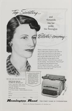 Werbeanzeige für Schreibmaschine Remington Electri-conomy monochrom