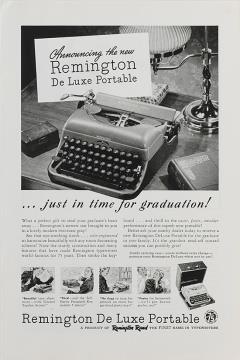 Werbeanzeige für Schreibmaschine Remington DeLuxe Portable monochrom
