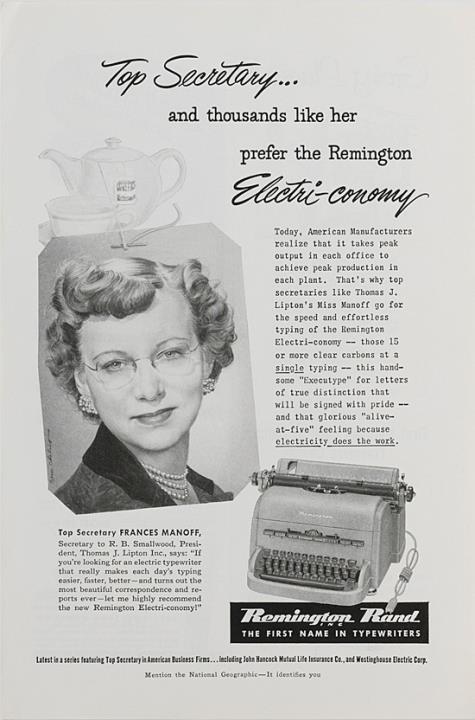 Werbeanzeige für Schreibmaschine Remington Electri-conomy monochrom