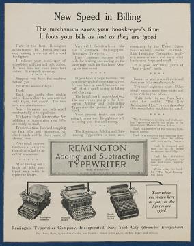 New Speed in Billing. Remington Adding and Subtracting Typewriter