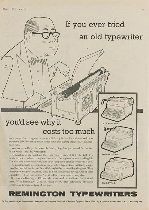 Werbeanzeige für Schreibmaschinen Remington monochrom