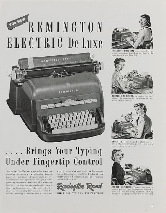 Werbeanzeige für Schreibmaschine Remington Electric DeLuxe monochrom
