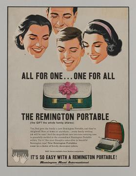Werbeanzeige für Schreibmaschine Remington Portable polychrom; mit Passepartout
