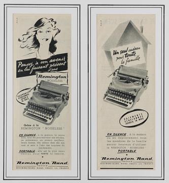 zwei Werbeanzeigen für Schreibmaschine Remington Noiseless monochrom; mit Passepartout