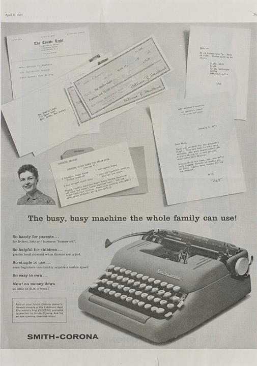 Werbeanzeige für Schreibmaschine Smith-Corona monochrom