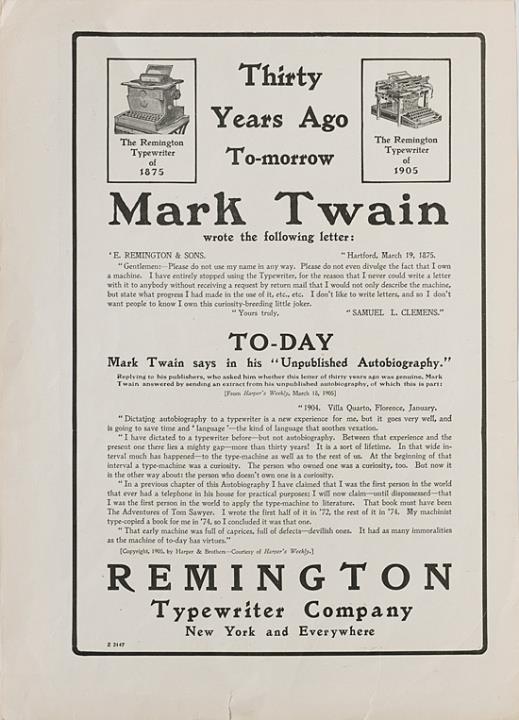 Werbeanzeige für Schreibmaschine Remington monochrom