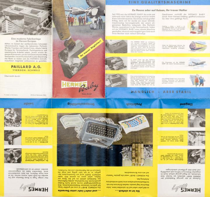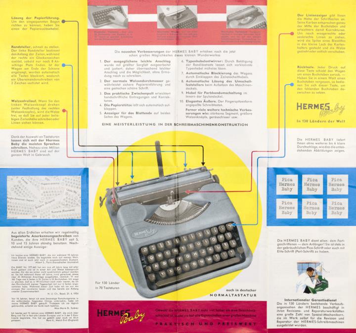 Faltprospekt für Schreibmaschine Hermes Baby