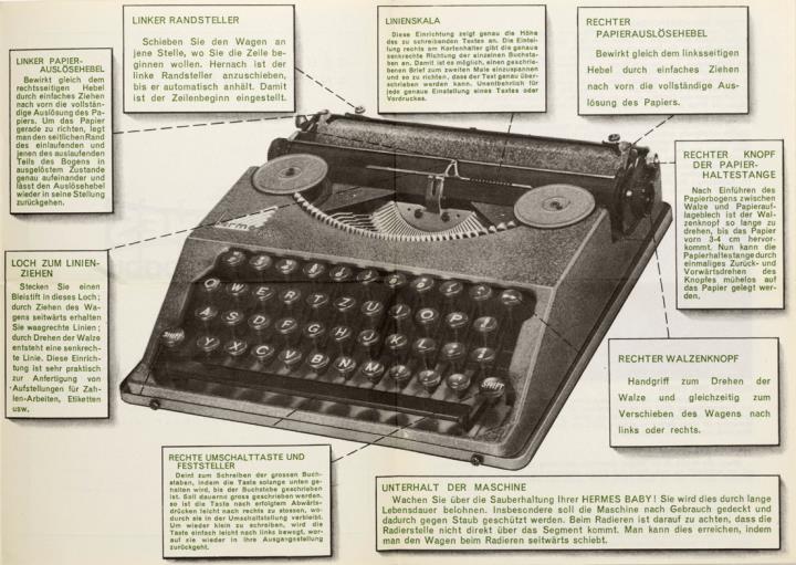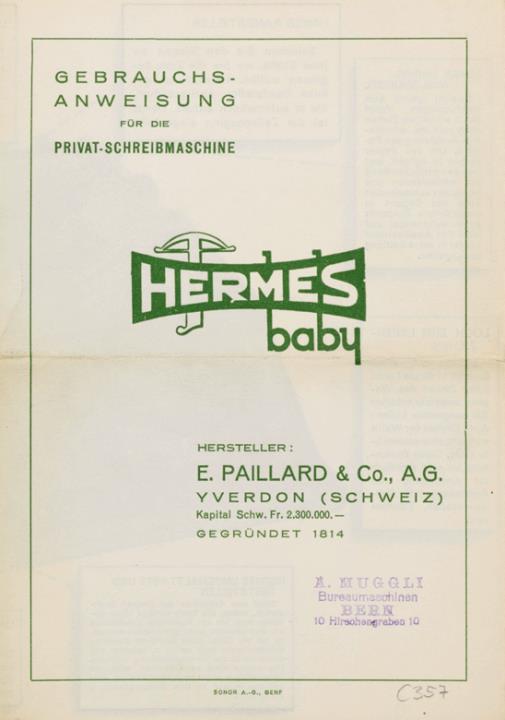 Bedienungsanleitung für die Privat-Schreibmaschine Hermes Baby in zweifacher Ausführung Version 1: o. Nr. Version 2: Nr. 102-c.-VII.38