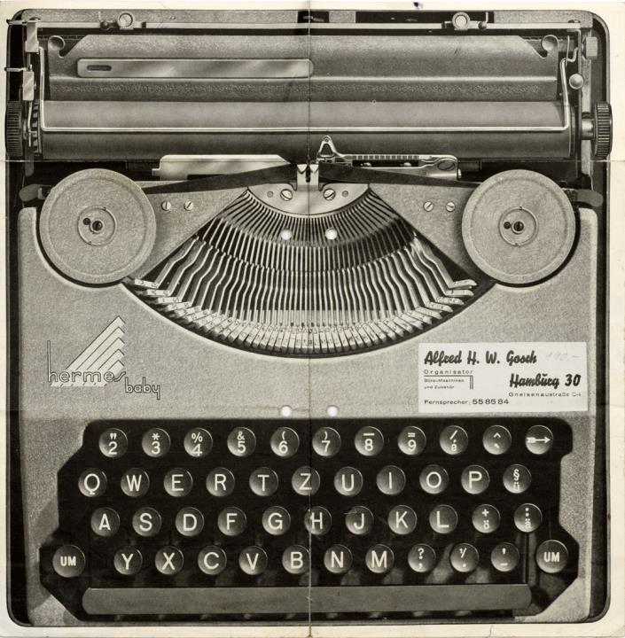 Next to literature on the history of technology, of the typewriter and the office, the Archive holds patent letters, textbooks and instruction manuals as well as historical postcards, letters, photographs and various kinds of advertising (leaflets and brochures, advertising stamps, newspaper ads, posters and signs, promotional gifts).