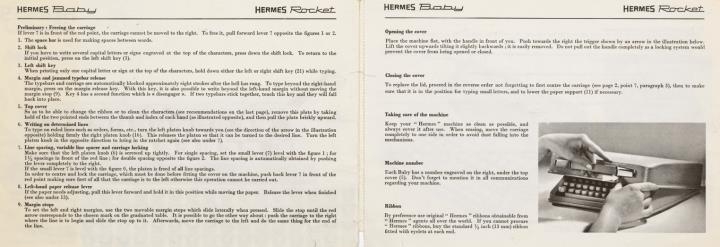 Bedienungsanleitung für Schreibmaschine Hermes Baby (Rocket) No. 149 A (Anglais)