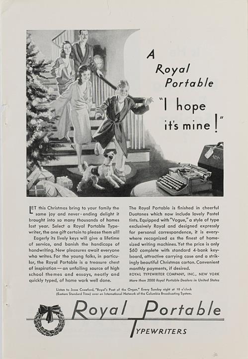 Werbeanzeige für Schreibmaschine Royal Portable monochrom