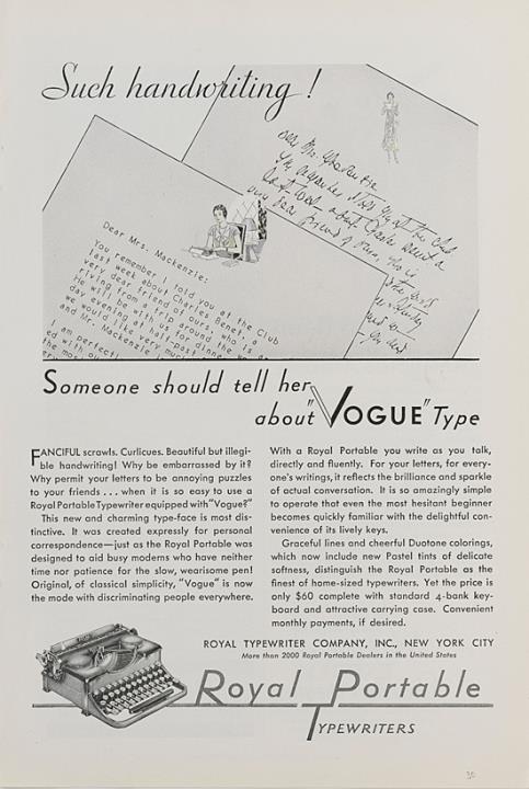 Werbeanzeige für Schreibmaschine Royal Portable monochrom