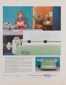 Werbeanzeige für Schreibmaschine Royal Electric polychrom