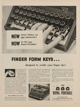 Werbeanzeige für Schreibmaschine Royal Portable monochrom