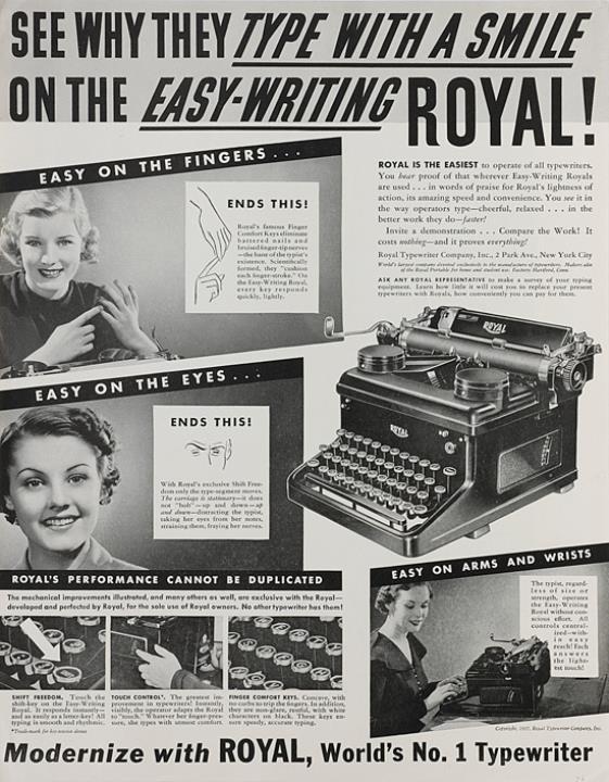 Werbeanzeige für Schreibmaschine Royal monochrom