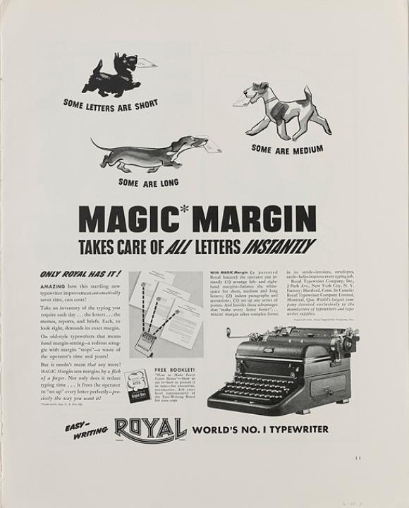 Werbeanzeige für Schreibmaschine Royal monochrom