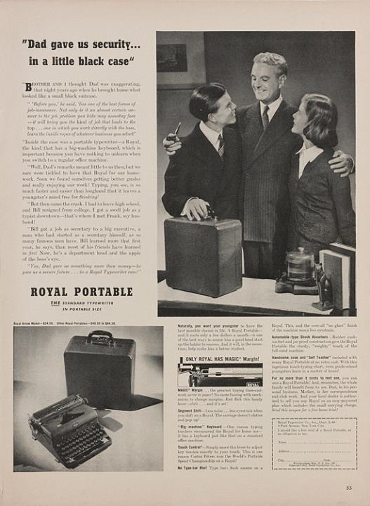 Werbeanzeige für Schreibmaschine Royal Portable polychrom