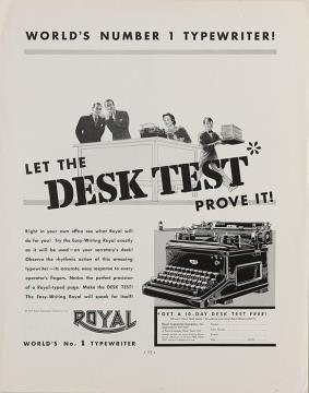 Werbeanzeige für Schreibmaschine Royal monochrom