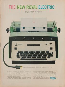 Werbeanzeige für Schreibmaschine Royal Electric polychrom