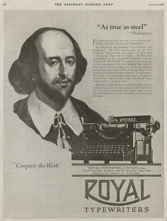 Werbeanzeige für Schreibmaschine Royal monochrom