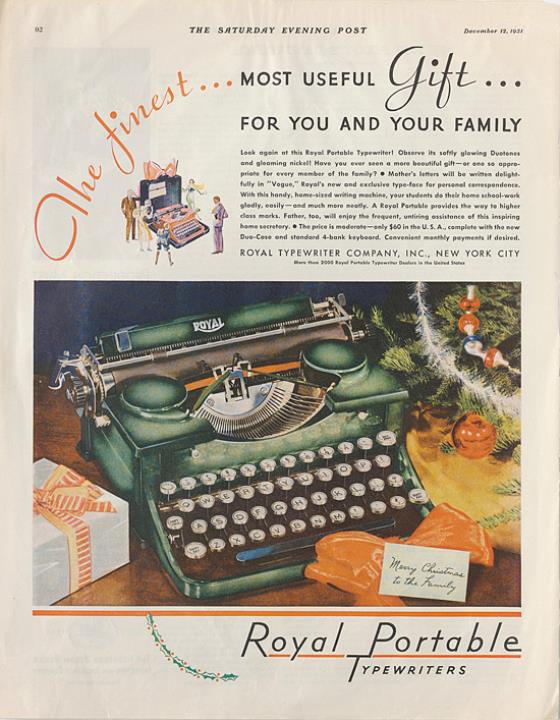 Werbeanzeige für Schreibmaschine Royal Portable polychrom