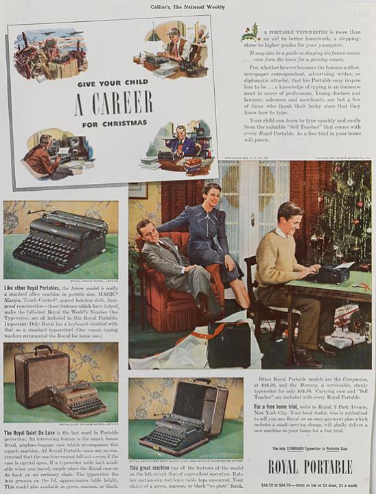 Werbeanzeige für Schreibmaschine Royal Portable polychrom