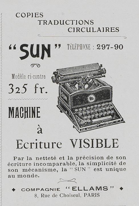 Zeitschriftenblatt mit Werbeanzeige für Schreibmaschine Sun monochrom