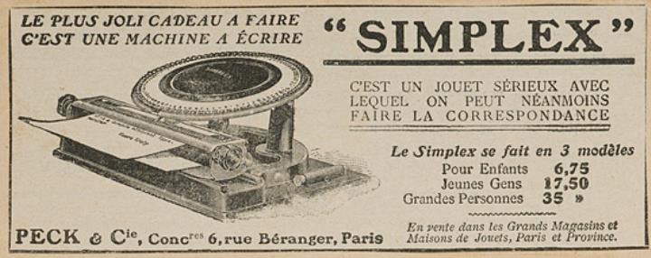 Werbeanzeige für Schreibmaschine Simplex; auf Karton geklebt monochrom