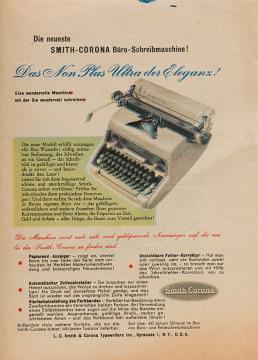 Werbeanzeige für Schreibmaschine Smith-Corona polychrom